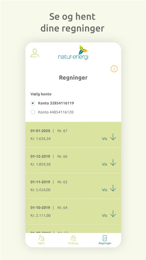 Med Natur-Energi app gør vi det nemt for dig at følge dit elforbrug - lige når det passer dig. Download app'en til din telefon eller tablet, så kan du nemt og hurtigt logge på din personlige Natur-Energi konto, som giver dig et godt overblik over dit elforbrug, og dine regninger.