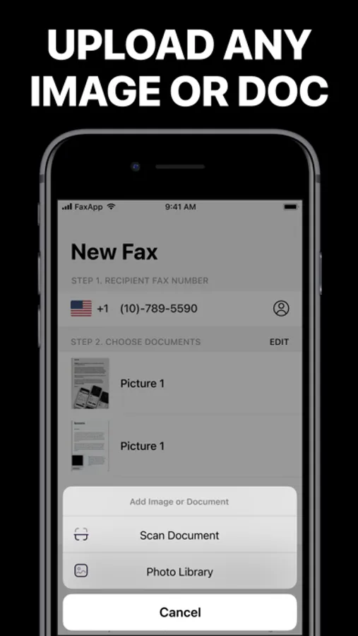 Scan any document with an advanced integrated document scanner app and fax them anywhere in the world in just a few taps!