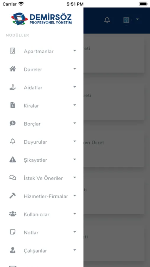 Demirsöz Apartman Yönetim Sisteminin Mobil Uygulamasıdır
