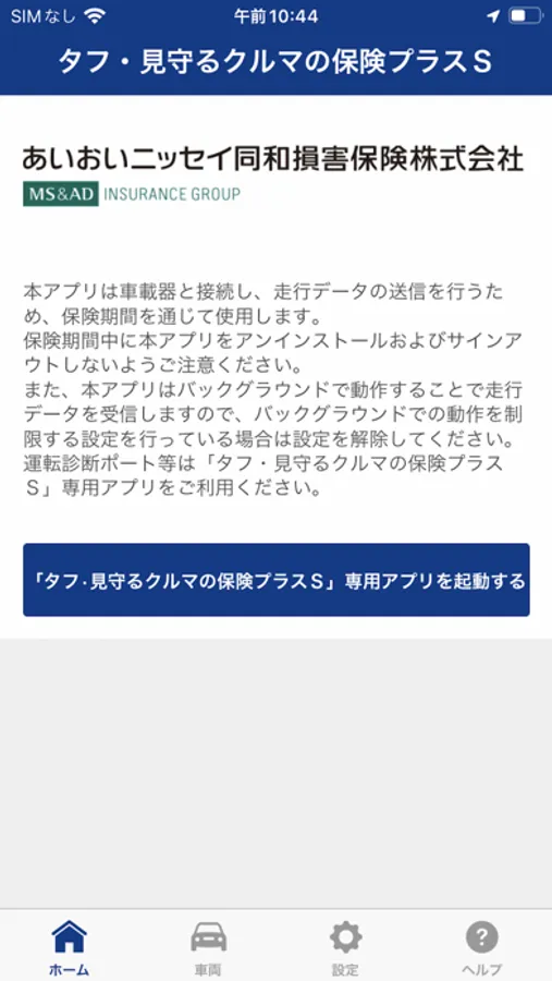 本アプリは、車載器とお持ちのスマートフォンで先進的なサービスをご提供するためのあいおいニッセイ同和損保「タフ・見守るクルマの保険プラスS」の接続用アプリです。
