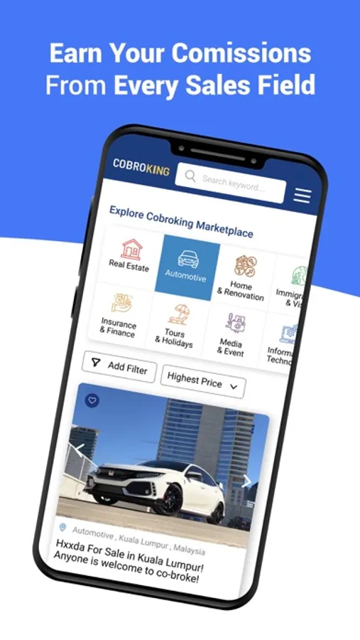 Cobroking is a marketplace where anyone can earn sales income easily by introducing clients to various sales professional from all fields of industries.