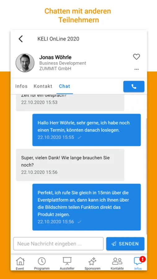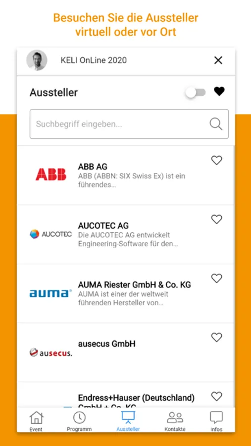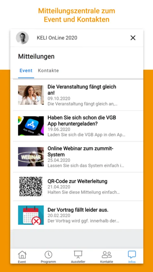 Unsere App bietet Ihnen hierfür ein vielseitiges Event-Tool: Sie können den Besuch von Veranstaltungen individuell planen, erhalten alle Informationen und Hintergrundmaterialien, können sich mit anderen Teilnehmern und den Vortragenden austauschen, an Abstimmungen teilnehmen und uns Feedback geben.