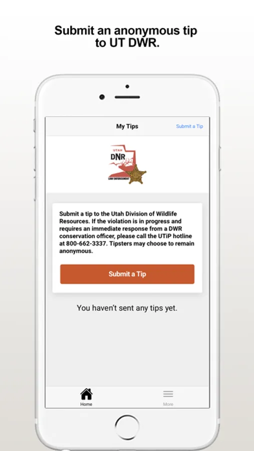 The UTDWR app provides citizens the ability to submit anonymous tips to the Utah Division of Wildlife Resources. The app also displays organization web and social media content.