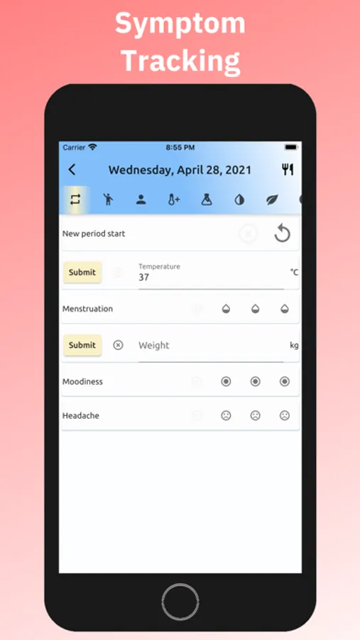 Our Symptom Tracker feature lets you track any health symptoms you may be experiencing and provides insights into how they may be related to your menstrual cycle.