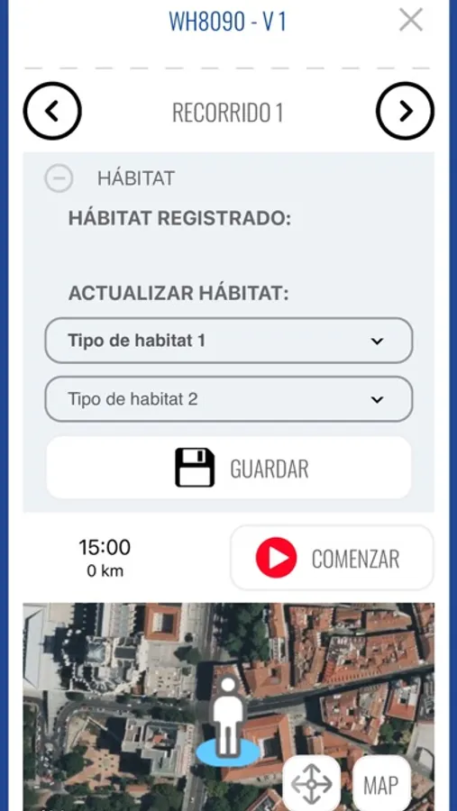 2. Comprobar en cada punto de muestreo o inicio de recorrido tu localización y la que está registrada en la base de datos. Así, podrás situarte para hacer el censo en el punto adecuado o bien modificar la coordenada si la que hay incluida no es correcta.