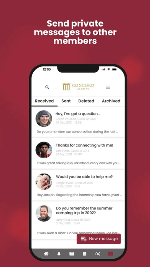 If you have an online profile on the Concord College Alumni Network, you can download and log into this exclusive app to give you instant access to Alumni news, events and notifications. This unique app helps you network with fellow Alumni and stay in touch. Share your news, photos and any interesting links to help make the Concord College Alumni App a vibrant and exciting platform.