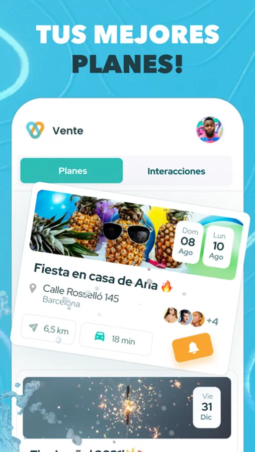 ¡Nunca ha sido tan fácil hacer planes! La app de Vente tiene todo lo que necesitas para organizar planes de forma fácil e intuitiva con tus amigos.