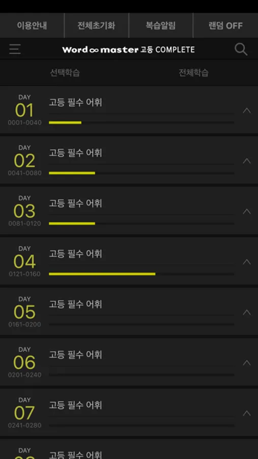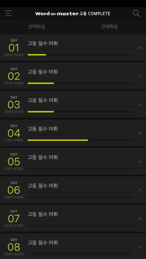 이제 [워드마스터 고등 COMPLETE APP]을 통해 언제 어디서든 어휘 학습을 시작하세요!