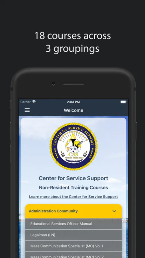 The CSS NRTC app provides non-resident training courses for: