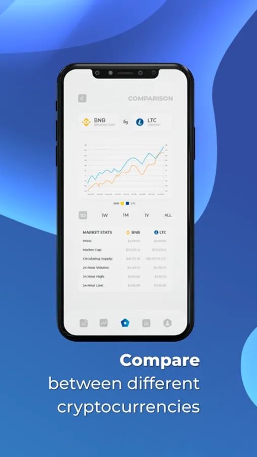 ■ MARKETS, GAINERS & LOSERS, COMPARE TOOL: Track cryptocurrency and filter +5000 cryptocurrencies, check daily gainers and losers and compare data between different assets