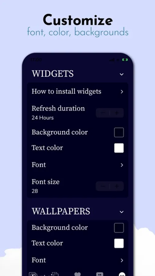 Receive daily reminders with your personal bible verse right on your home screen and stay inspired every time you pick up the phone. You will be able to choose out of the most popular Verses categories and feel God's support in everyday life. Improve the faith by reading Bible Verses and feel motivation and the joy of life!