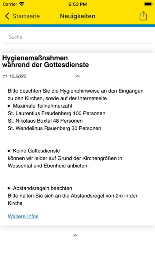 Die App der Seelsorgeeinheit erinnert, wenn gewünscht, per Push-Nachricht an alle Termine der Gemeinde. In den Einstellungen einfach auswählen, zu welchen Themen Sie Push-Nachrichten erhalten möchten.