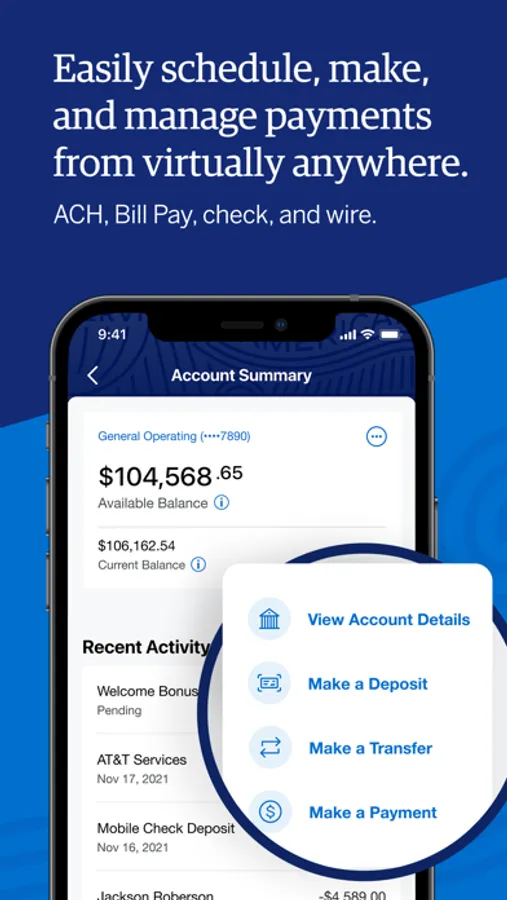 • Wire, ACH, Bill Pay, and check payment options for more flexibility