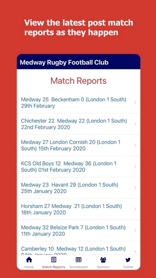 - Twitter: Read the latest social media activity on @MedwayRFC, share phots, videos and all things Medway Rugby Club