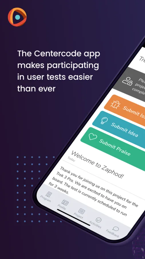 Find product testing opportunities and submit feedback wherever you are. The Centercode app makes participating in user tests easier than ever.