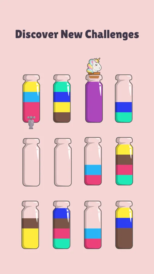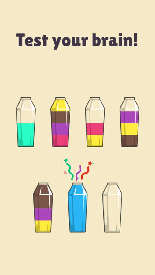 At each stage of this brain game you will unlock new challenges! You'll have to go through the tap puzzle stage, after the brick puzzle, until you finally master the Water sort puzzle!