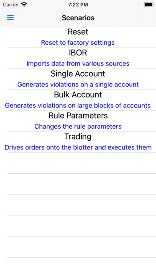 This application is part of a suite of apps for the OpenBook OMS/IBOR Engine. OpenBook Mobile can generate orders according to pre-packaged scenarios and accesses many of the functions available on the Web Server for pre-trade, post-trade and proposed order compliance checking.