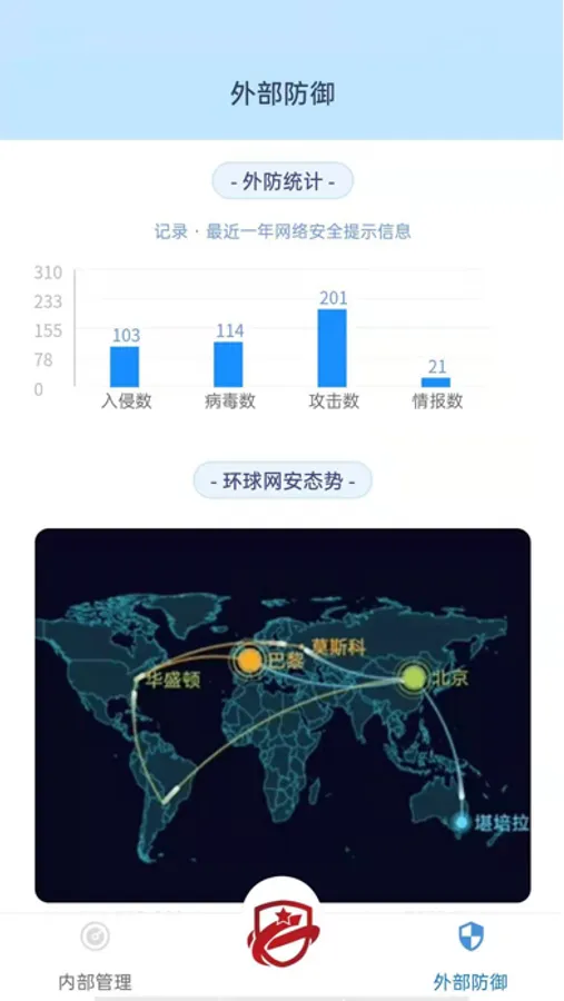 七壹红盾智能外防产品可结合网安智脑与智能内控产品,通过在客户端部署专用设备的方式,配合七壹网络云服务,对客户便捷实现入侵防御、病毒查杀、网络态势感知、数据分析等功能。保障客户的网络稳定性。