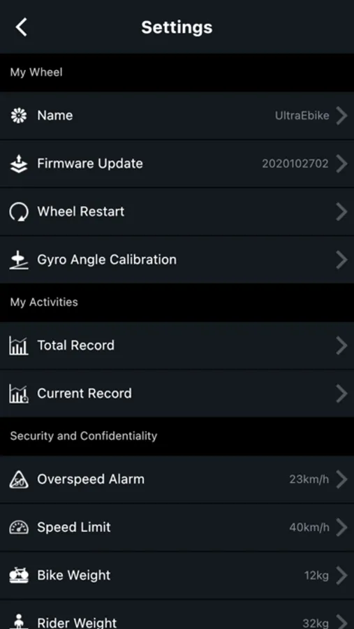 UltraEbike is a customized APP for the UltraEbike powered wheel. UltraEbike connects the wheels via Bluetooth, displays wheel status, changes wheel settings, upgrades wheel firmware, etc.