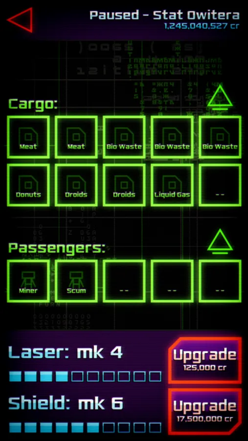 Upgrade your spaceships laser and shield for a better chance to stay alive, and to improve your ranking from harmless to competent.