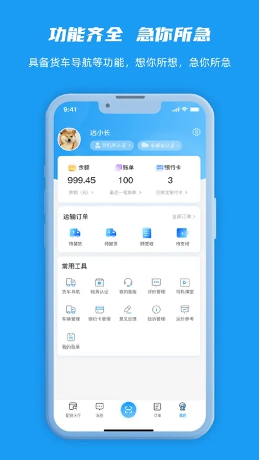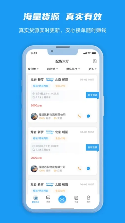 远长司机版为降低司机返程车、回头车的空返率,是司机找货值得信赖的物流配货平台。一款用于运输物流、寻找一手货源信息、发布物流车源信息的软件。支持干线物流、长途货运、同城货运功能,货车司机直接对接到客户,大大提升货车行使效率,为车找货(配货)、为货找车(托运)提供全面的物流信息服务,为百万司机提供更高效更方便的挣钱方式。