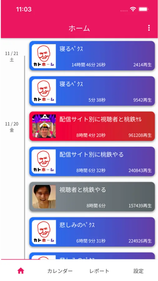 様々なプラットフォームで行われる加藤純一さんの配信情報を、タイムライン形式やカレンダー形式で簡単に確認できます。