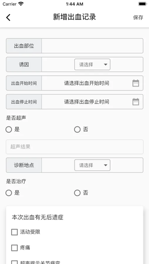 方便血友病患者或家属记录患者用药、出血等情况的工具,主要包含以下功能