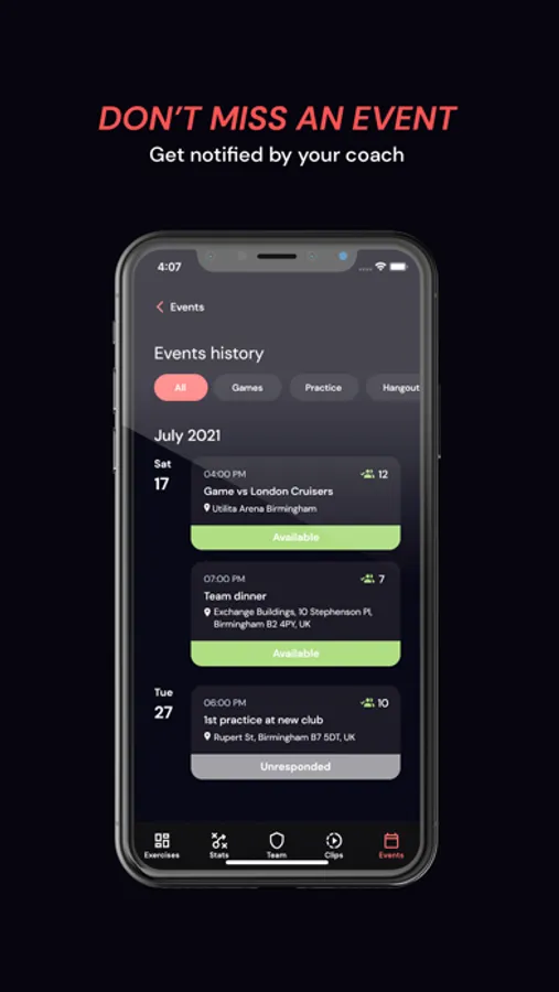 Practice drills, exercise, compete with your teammates and meet your coach objectives.