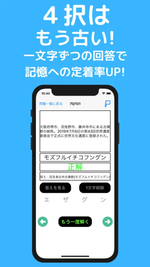 アプリなのでいつでもどこでも問題演習ができ、スキマ時間の学習に最適。