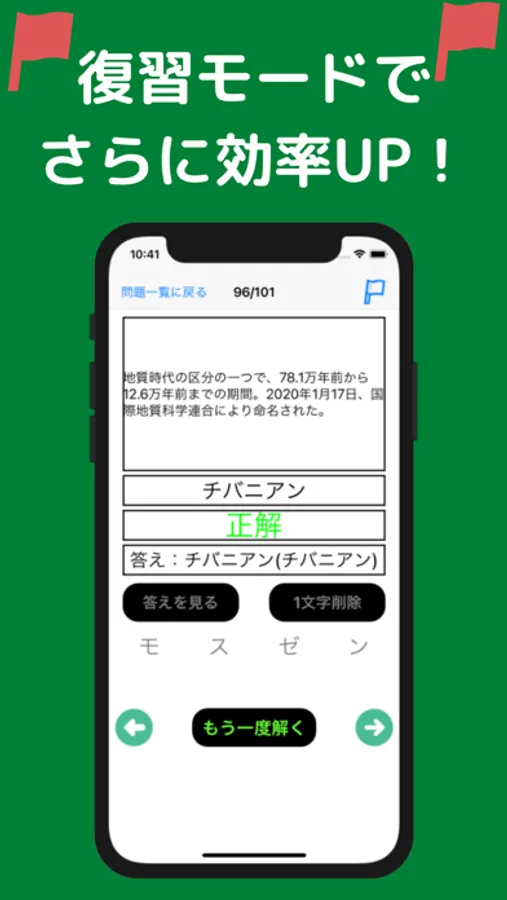 苦手な問題は右上のフラグマークをチェックすると復習モードに移行し学習効率がさらにアップ。