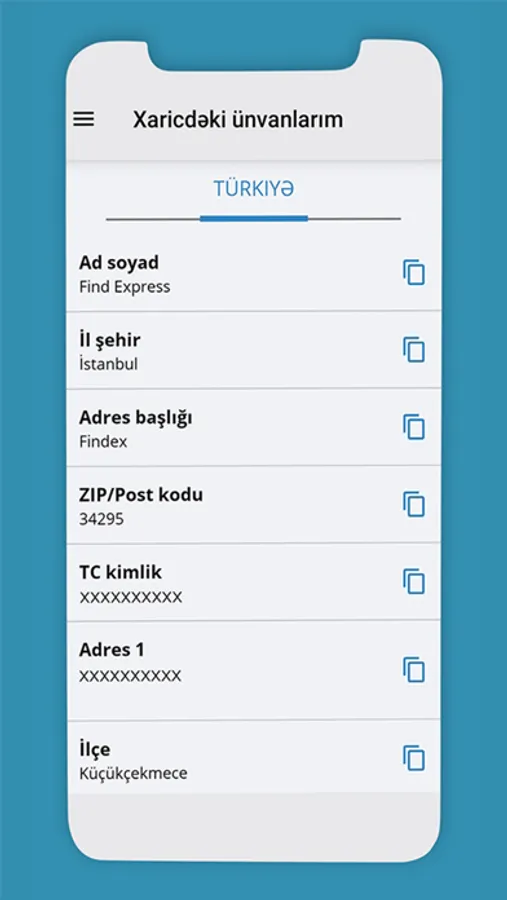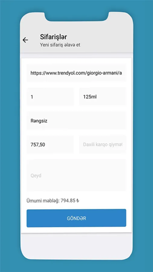 Türkiyədən sifariş olunan bütün malların, eləcə də onlayn mağazalardan sifariş olunan məhsulların çatdırılmasını həyata keçirir. Bağlama xaricdə yerləşən anbarımıza daxil olduğu andan müştəriyə təhvil verilənədək şirkət tam məsuliyyət daşıyır və 2-3 gün ərzində Azərbaycana çatdırılır.