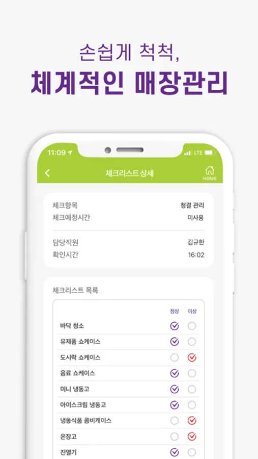 ▶ 운영 관리 : 체크리스트, 유통기한캘린더, 조기경보