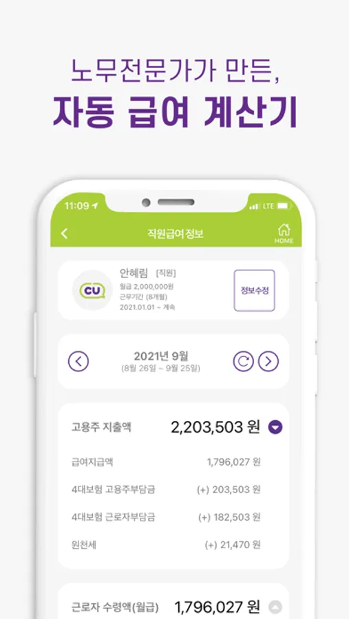 ▶ 스태프의 근무기록에 따라 급여가 자동으로 계산됩니다.