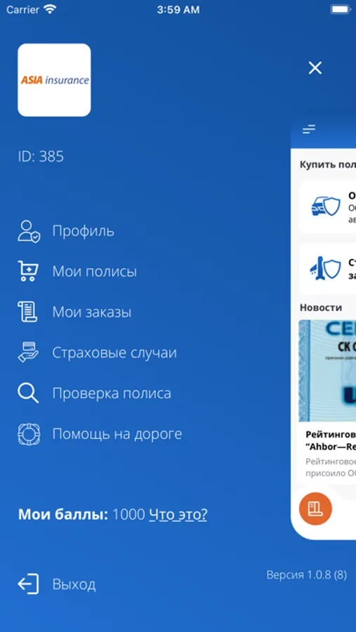 Внутри приложения вы найдете массу дополнительных возможностей от обзора новостей страховой компании Asia Insurance до программы лояльности "Помощь на дороге", которая поможем объединить водителей всей страны для помощи друг другу в сложной дорожной ситуации, при этом заработать бонусные баллы, которые помогут в дальнейшем пользоваться услугами Asia Insurance с большой скидкой!