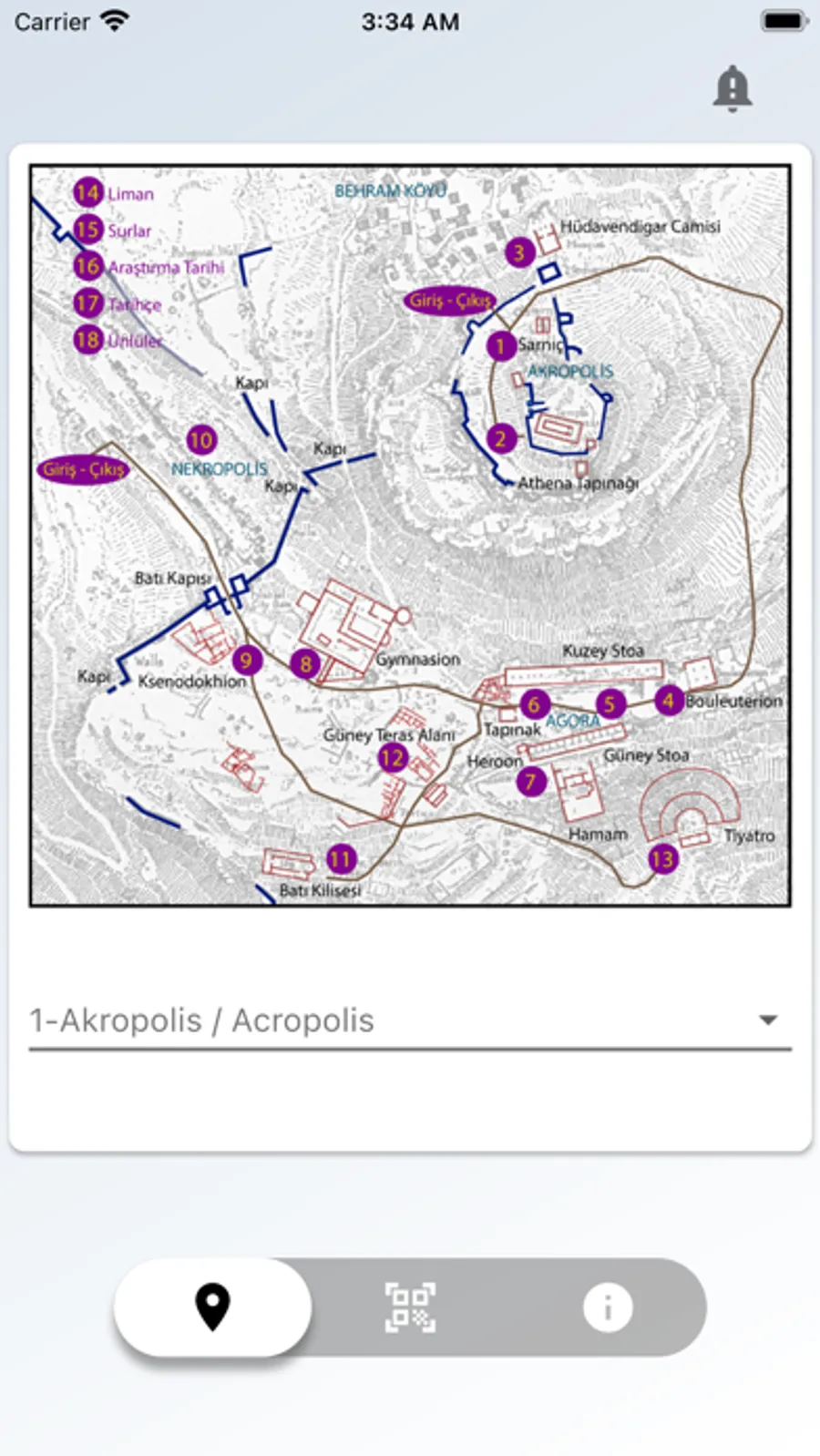 It is an application that provides information about Assos Ancient City on the map or with a QR code reader. During the visit to the Ancient City, information about the area in Turkish and English can be read by reading the QR code.