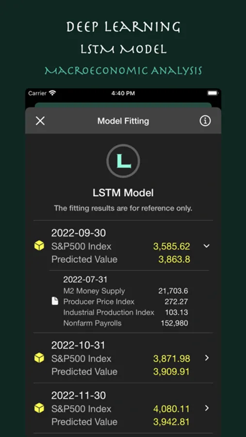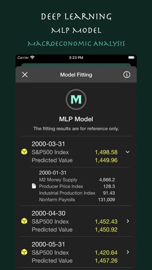 Macro3M uses mathematical statistics and machine learning models to analyze the impact of U.S. economic indicators on the market, find the rules and build a generalized model. Through the model, you can enter specific economic indicator data to predict the market performance next month. You can use the predicted value of the model to help you analyze the impact of economic indicators on the market. In the long run, the market always fluctuates around the economy and tends to the same direction.