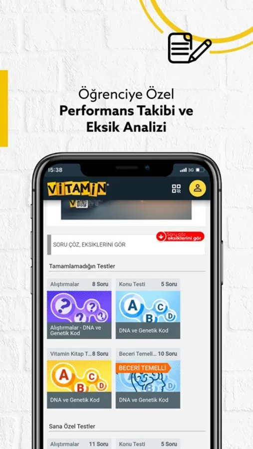 Eksiksiz öğrenmesi, güçlü temeller oluşturabilmesi ve tüm bunları keyifle, istekle, hevesle yapabilmesi için Vitamin’in güvenilir eğitsel içerikleri, şimdi Vitamin Cep Uygulaması’yla öğrencinin istediği her an yanında!