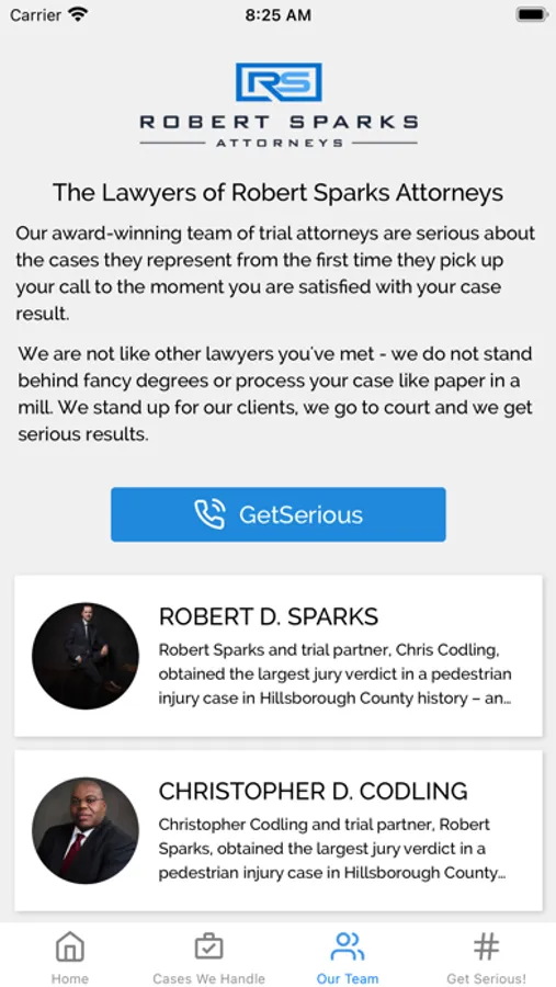 GET SERIOUS is more than our slogan, it's our mission statement. We are former prosecutors, former insurance defense attorneys, former public defenders and former law enforcement with over 100 years of combined experience as trial lawyers.