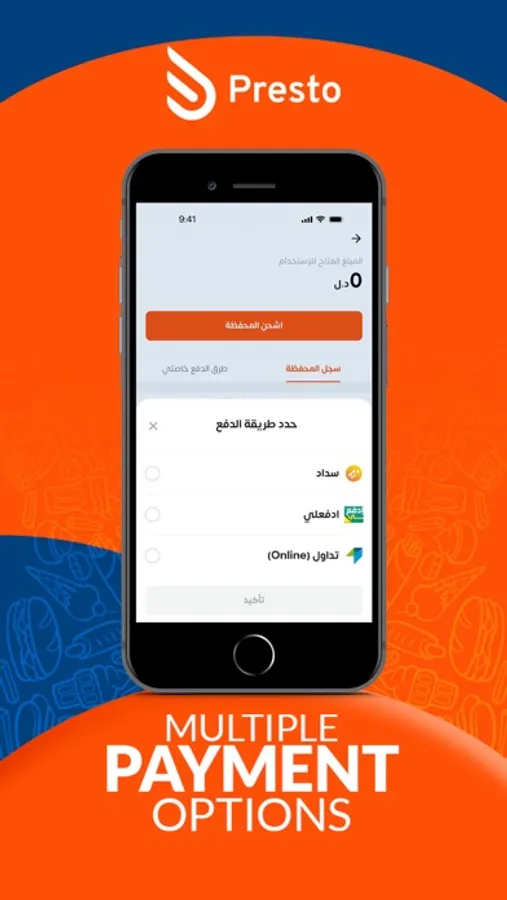 - استعمل وسائل الدفع مثل النقد، محفظة بريستو، وسائل الدفع الإلكترونية وغيرها.