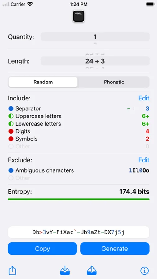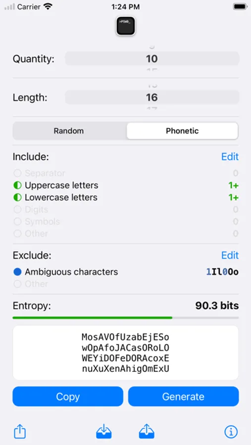 • Has the ability to generate phonetic passwords following a consonant-vowel order, resulting in better readable passwords