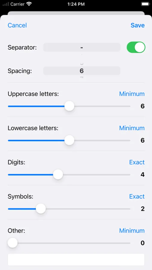 • Generates passwords with a length of up to 128 characters using any combination of characters