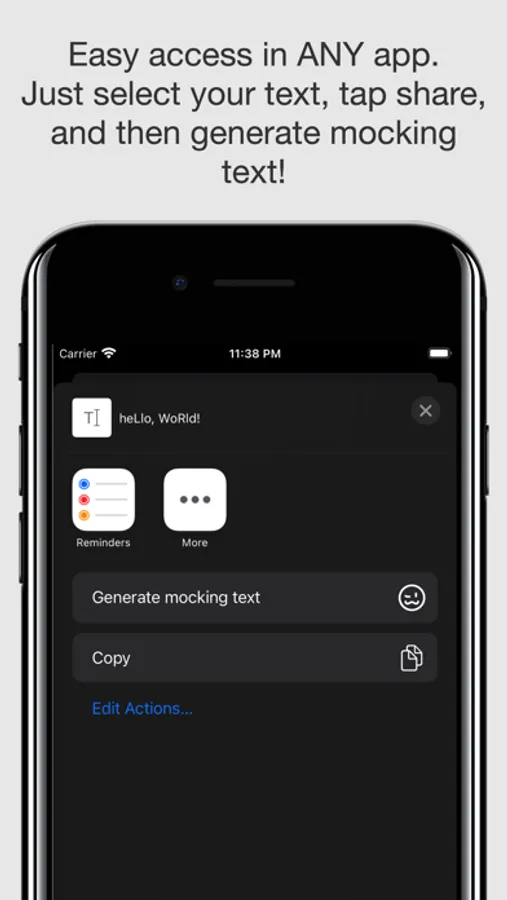 Want to update the text you're entering in an email? Just select the text, tap share, and select Generate Mocking Text.