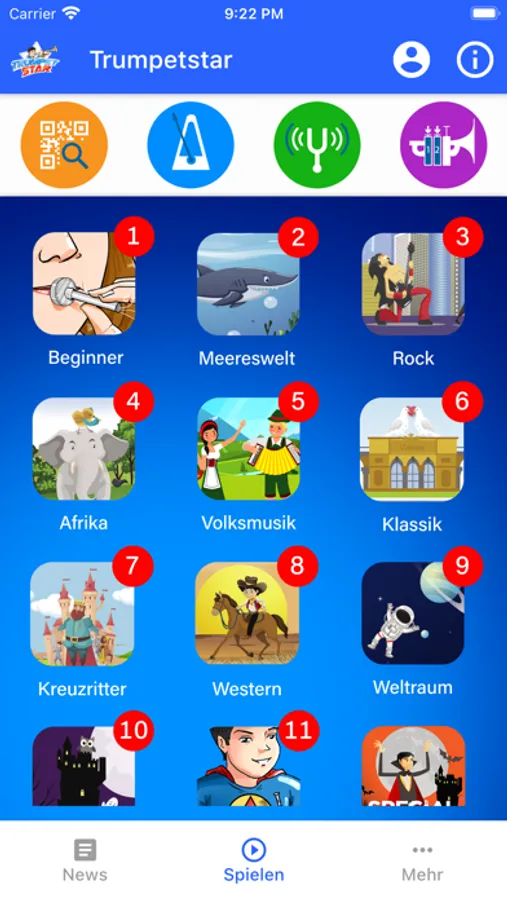 Als perfekte Ergänzung zum Trumpetstar Lernheft gibt es auch die Trumpetstar-App, mit der dir alle Playbacks zur Verfügung stehen. Weiters kannst du damit alle QR-Codes scannen und hast zudem auch noch die Möglichkeit, die Lernvideos anzusehen. Fürs optimale Üben gibt es außerdem noch ein Metronom, ein Stimmgerät und eine Grifftabelle. Worauf wartest du also noch, kleiner Trumpetstar? Los geht's!