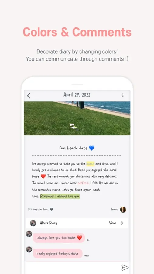 Share your daily life with your love, LuvDiary. Feel stronger bond that keeps your relationship stable.