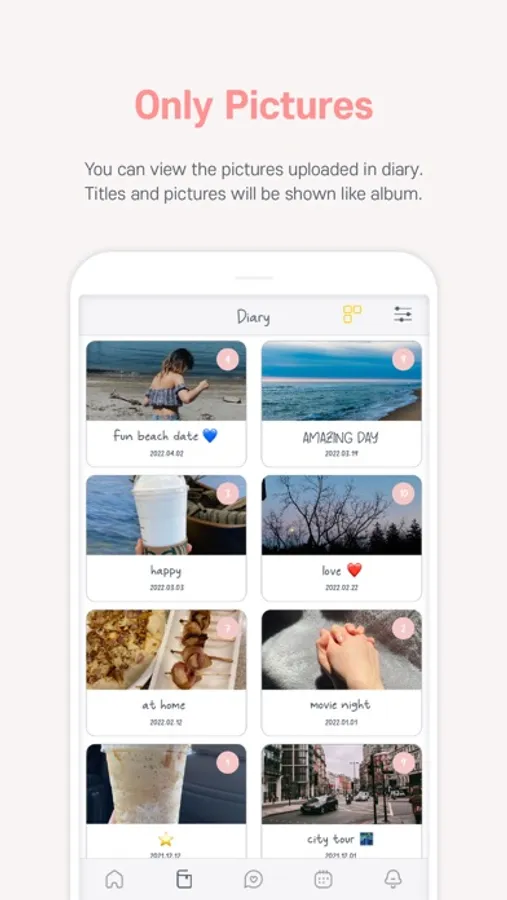 When you and your partner complete the diary, your heart count will increase by 1. You can check the total heart count at the home screen. If your love hasn't write today's diary, you can remind your love by clicking the "remind" button. Add pictures to give a vivid image of your day to your bf / gf. You can also communicate with your significant half by comments. Make your LuvDiary full of relationship memories with diaries.