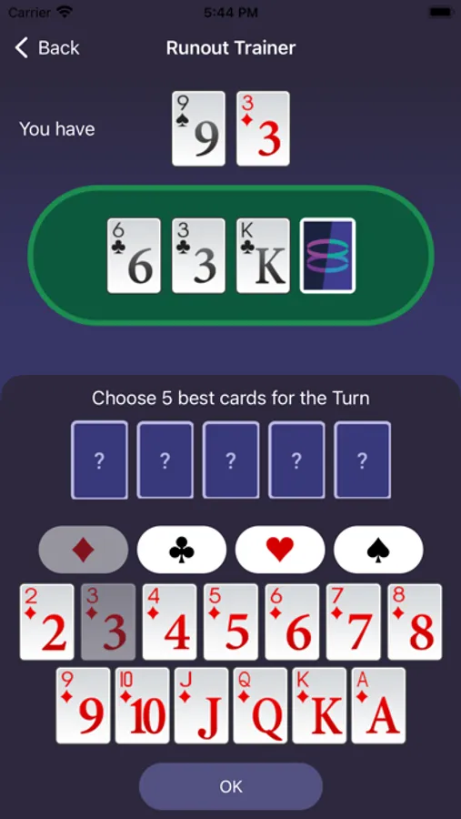Evenbet Poker Trainer allows you to develop the ability to evaluate incoming cards; the ability, without hesitation, to determine the best cards for their situation on the turn and river.
