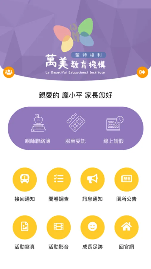 希望這個系統能提供在本校學就讀學生家長的方便性,與家長間做更方便的互動 及 接送小朋友上下課 更為便捷
