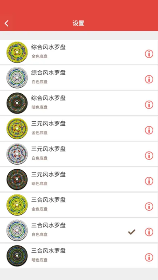 5、九种盘面供选择,多种专业风水罗盘:综合,三元,三合。