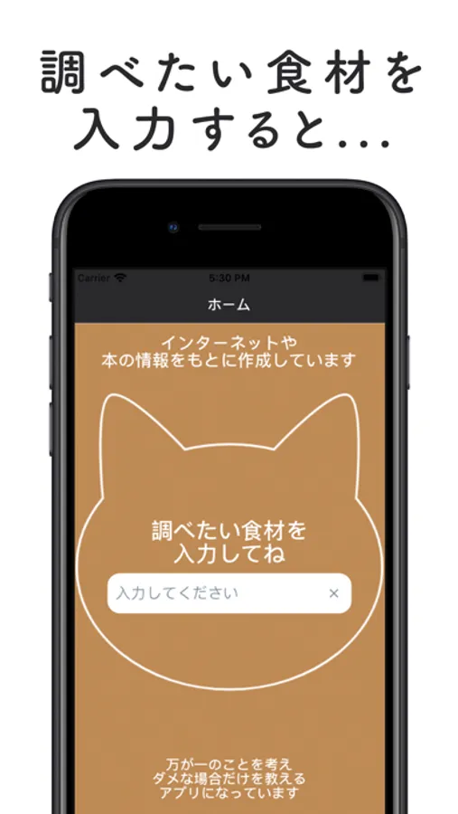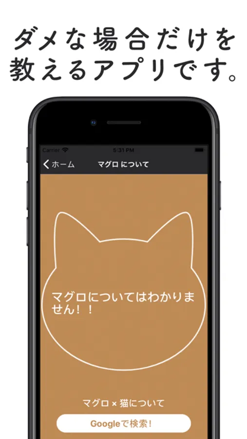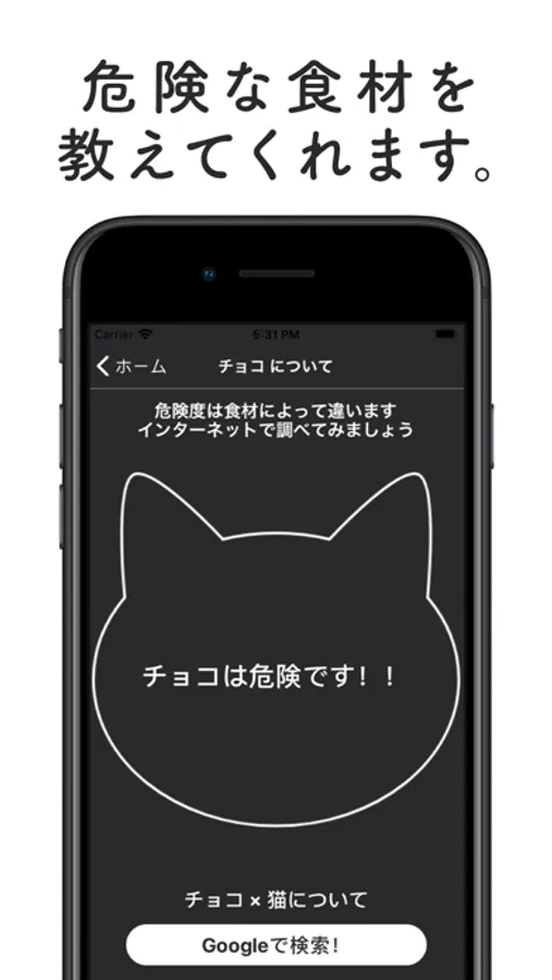 ネコが食べると死に至る可能性のあるもの・健康を害するものをすばやくかんたんに確認できるアプリです。