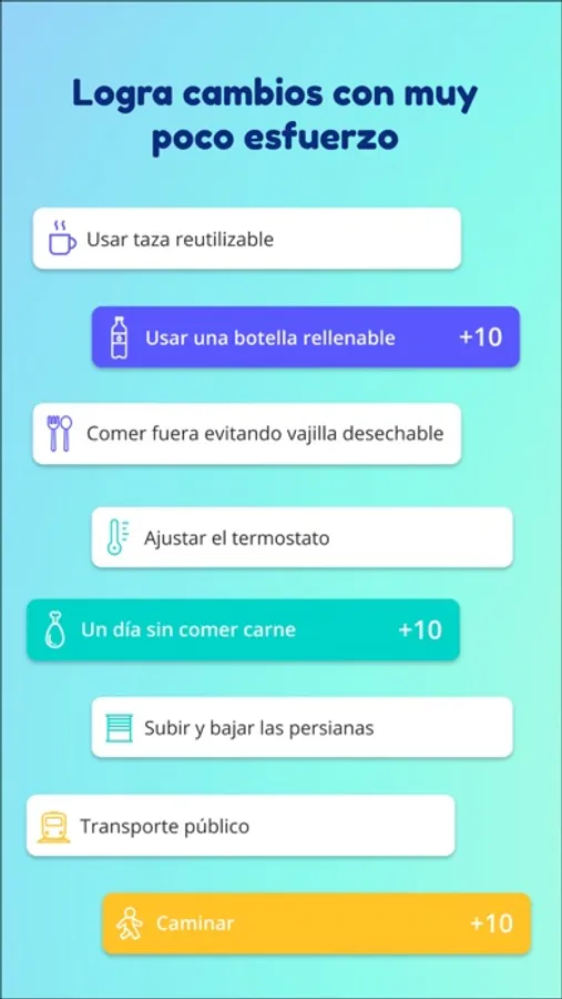 Whether you are looking to lead a sustainable life as an individual or if you belong to an organization that wants to promote a culture aligned with the SDGs by involving people, The Good Goal is your perfect tool! We will help you to improve your habits gradually thanks to the personalized challenges we offer you according to your level of involvement. Moreover, we are the only app that offers you reliable data on your CO2 savings.